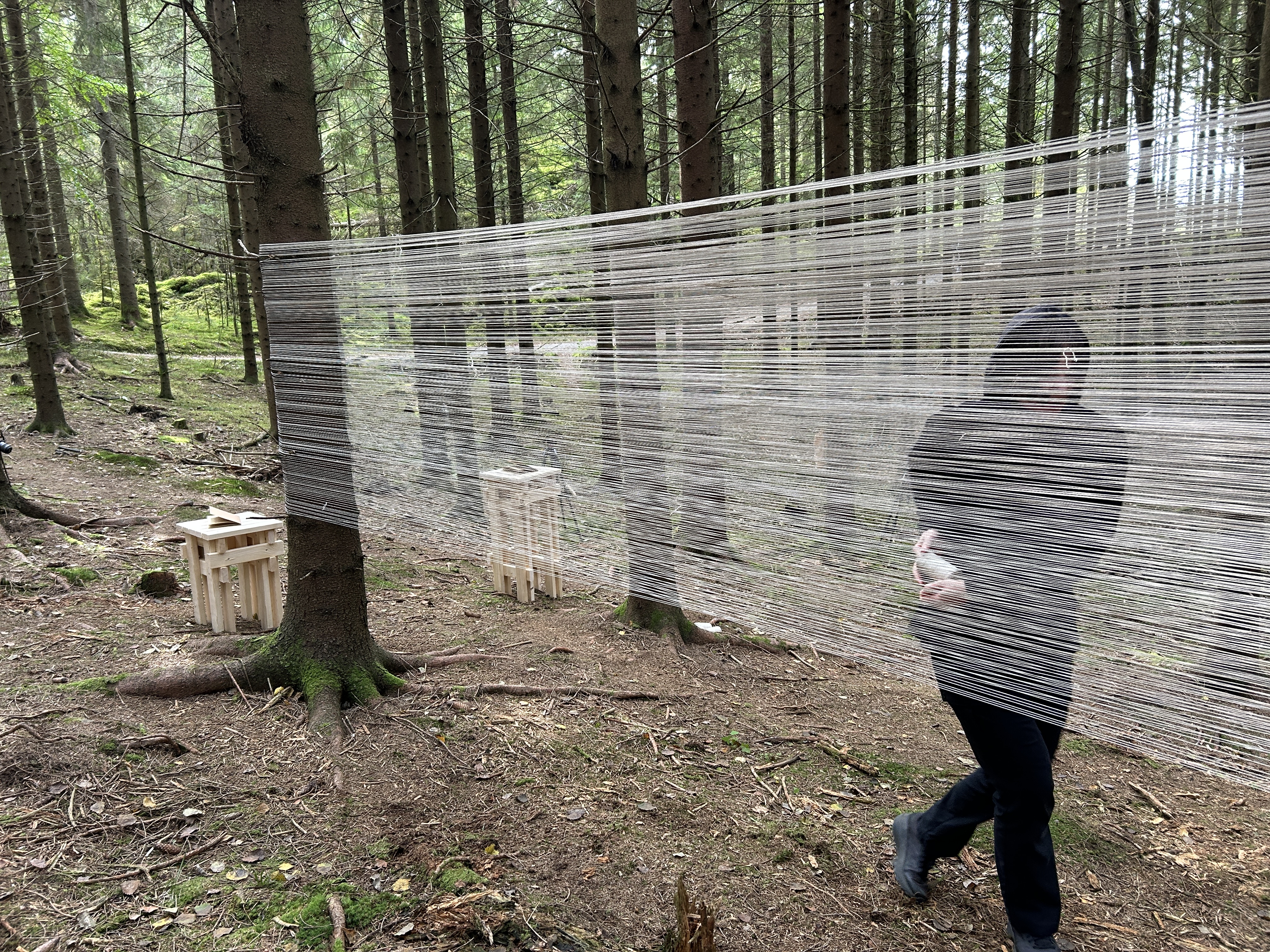 Verket uppstod under en tre dagar lång performance där de tre konstnärerna vävde tre väggar i långsam takt med tunn lintråd mellan träd i skogen. Totalt består verket av 7540 meter tråd. Rulle för rulle vävdes tidsdimensionerna nutid, dåtid och framtid fram parallellt, jämsides varandra. När en rulle tog slut pausades den fysiska vävningen för att ge plats åt den sinnliga. Konstnärerna intog då varsin pall som fanns i anknytning till vävarna för att reflektera en stund innan föregående rulle knöts samman med nästa och den fysiska vävningen återupptogs. Till skillnad från nornorna växlade konstnärerna mellan de tre olika vävarna och representationerna för tid. Detta för att alla skulle få ta plats i, och reflektera kring, den tid som vävdes fram, för att slutligen tillsammans färdigställa slutet på varje väv.